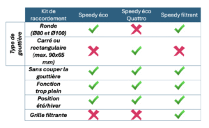 Zone plane pour raccordement à une gouttière ou pour jumeler 2 cuves