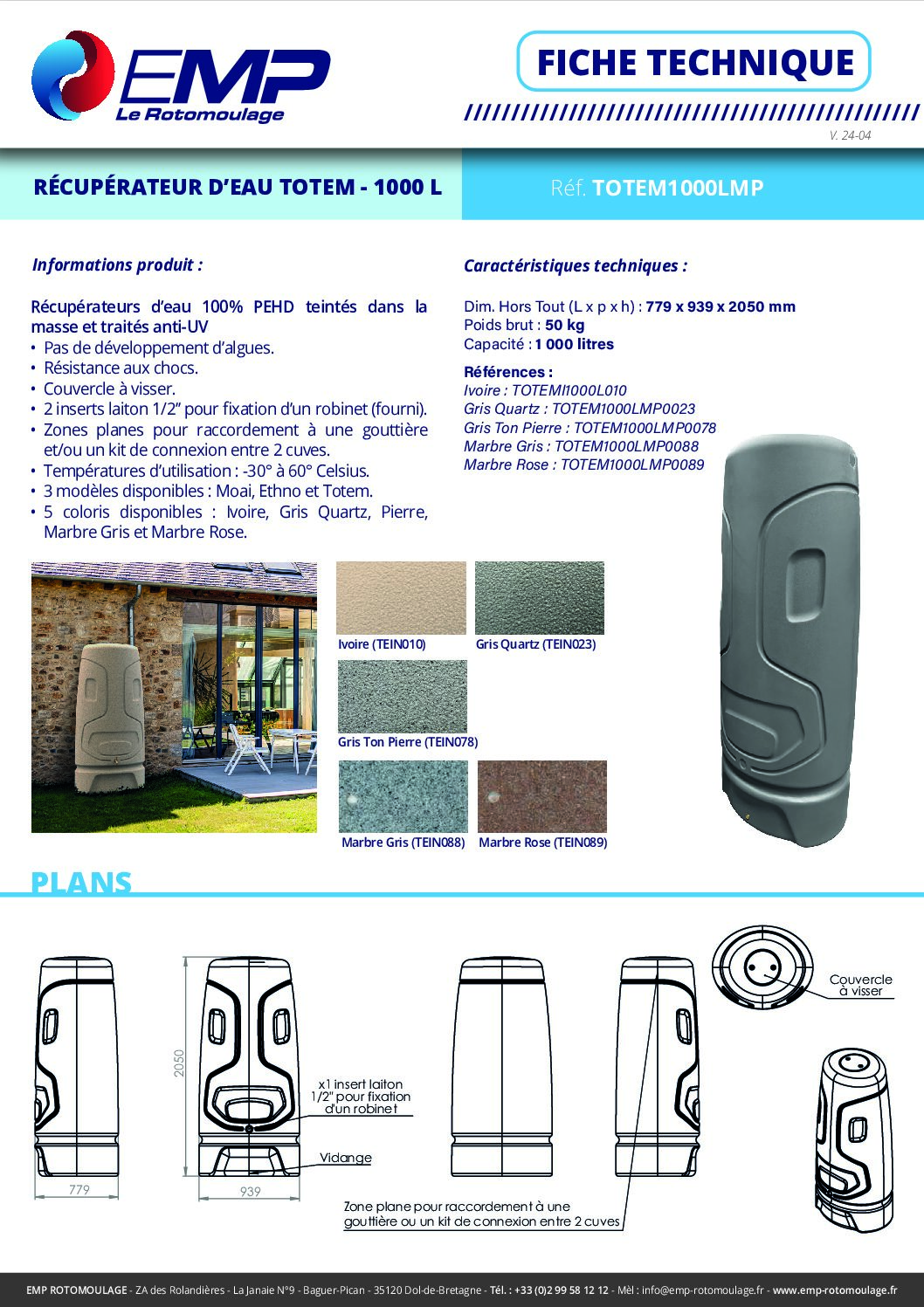 Récupérateur d’eau de pluie 100% polyéthylène haute densité, teinté dans la masse et traité anti-UV.