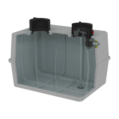 Ce type de cuve peut être équipées de différents accessoires améliorant la qualité de l’eau stockée (préfiltre de cuve, arrivée calme, aspiration flottante, jauge de niveau,  ….)